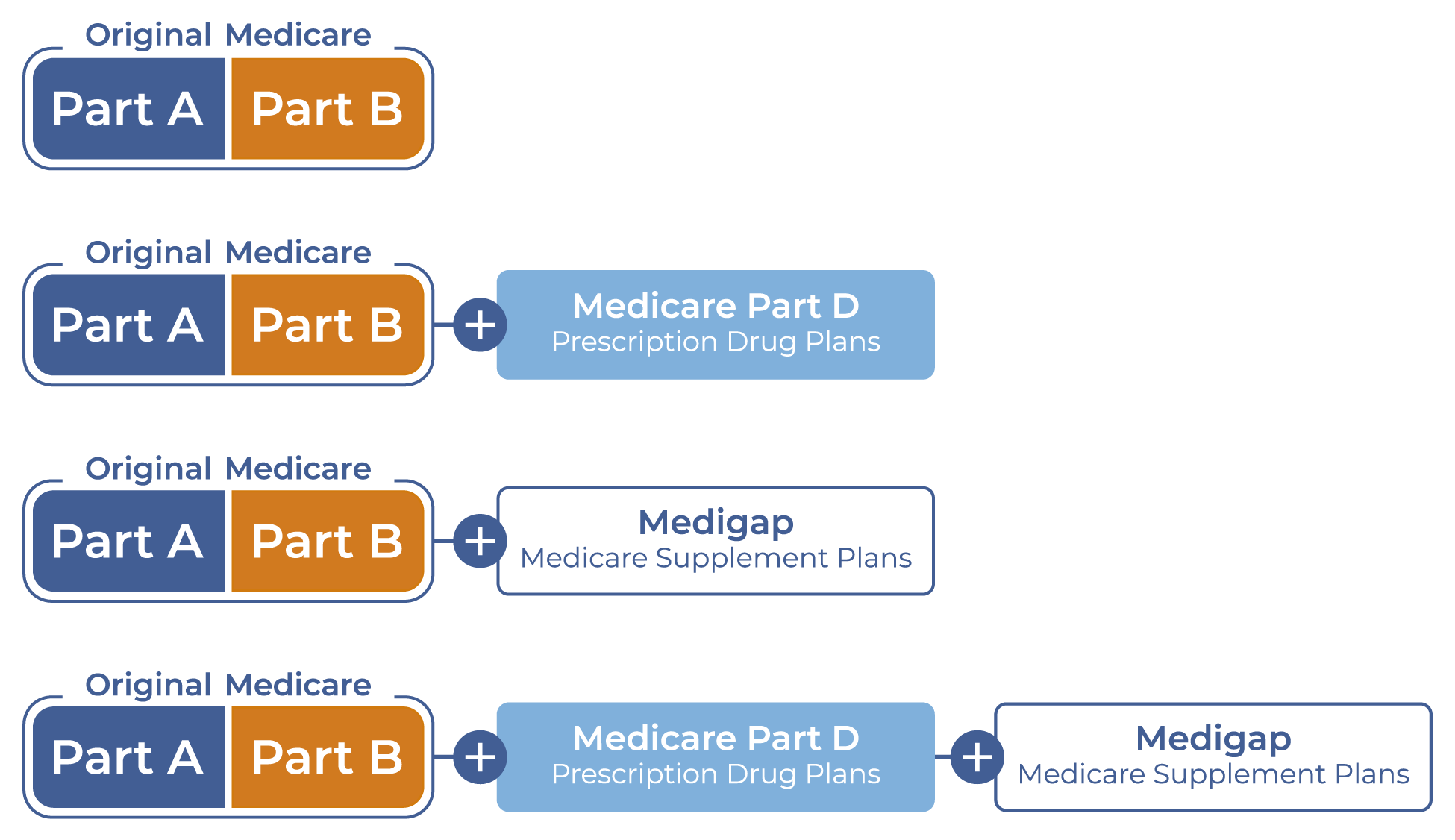 You have the option to add Part D, Medigap, or both to Original Medicare.